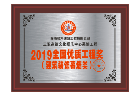 2019全國(guó)優(yōu)質(zhì)工程獎(jiǎng) 三亞高德文化娛樂(lè)中心幕墻工程